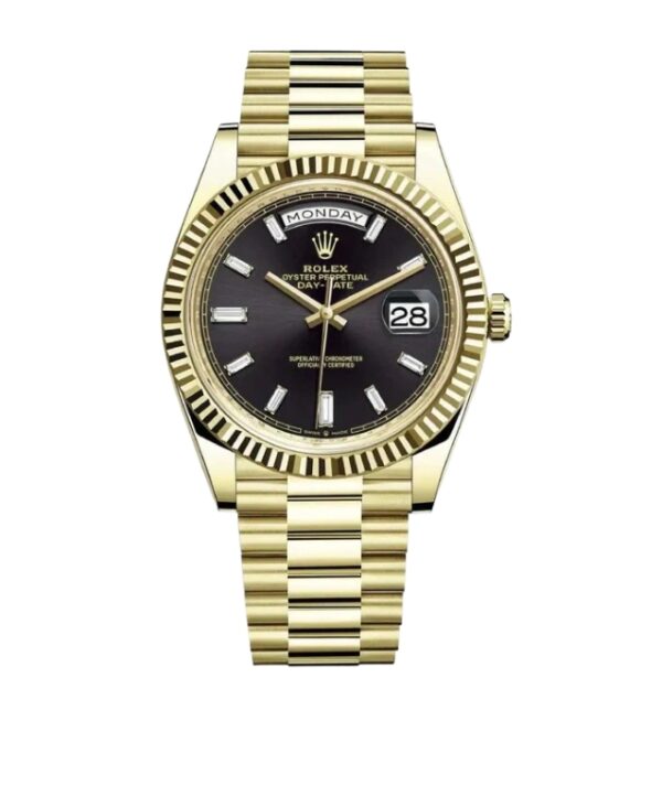 롤렉스 데이데이트 40mm Counterweight 228238-0004 Full Yellow Gold Diamond Baguette Black Dial[ARF]